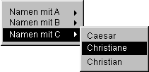 Eine verschachtelte Auswahlliste sollte ein Web-Browser nicht wie üblich als einfache Auswahlliste anzeigen, sondern als verschachtelte Menüstruktur. Anwender moderner grafischer Oberflächen kennen solche verschachtelten Menüs. Das Startmenü von Windows 95 ist beispielsweise ein solches Menü. So in etwa ist es gedacht: